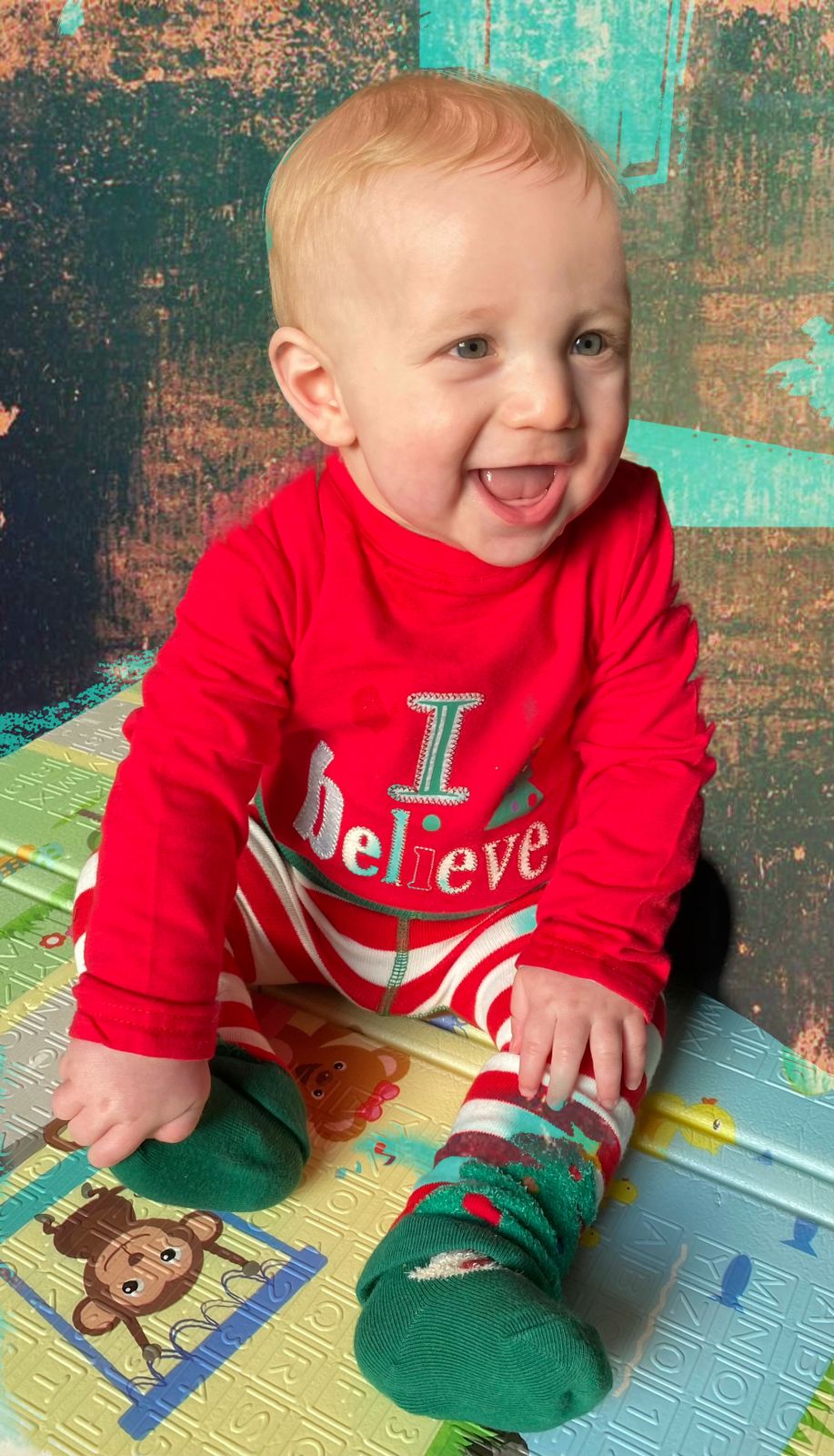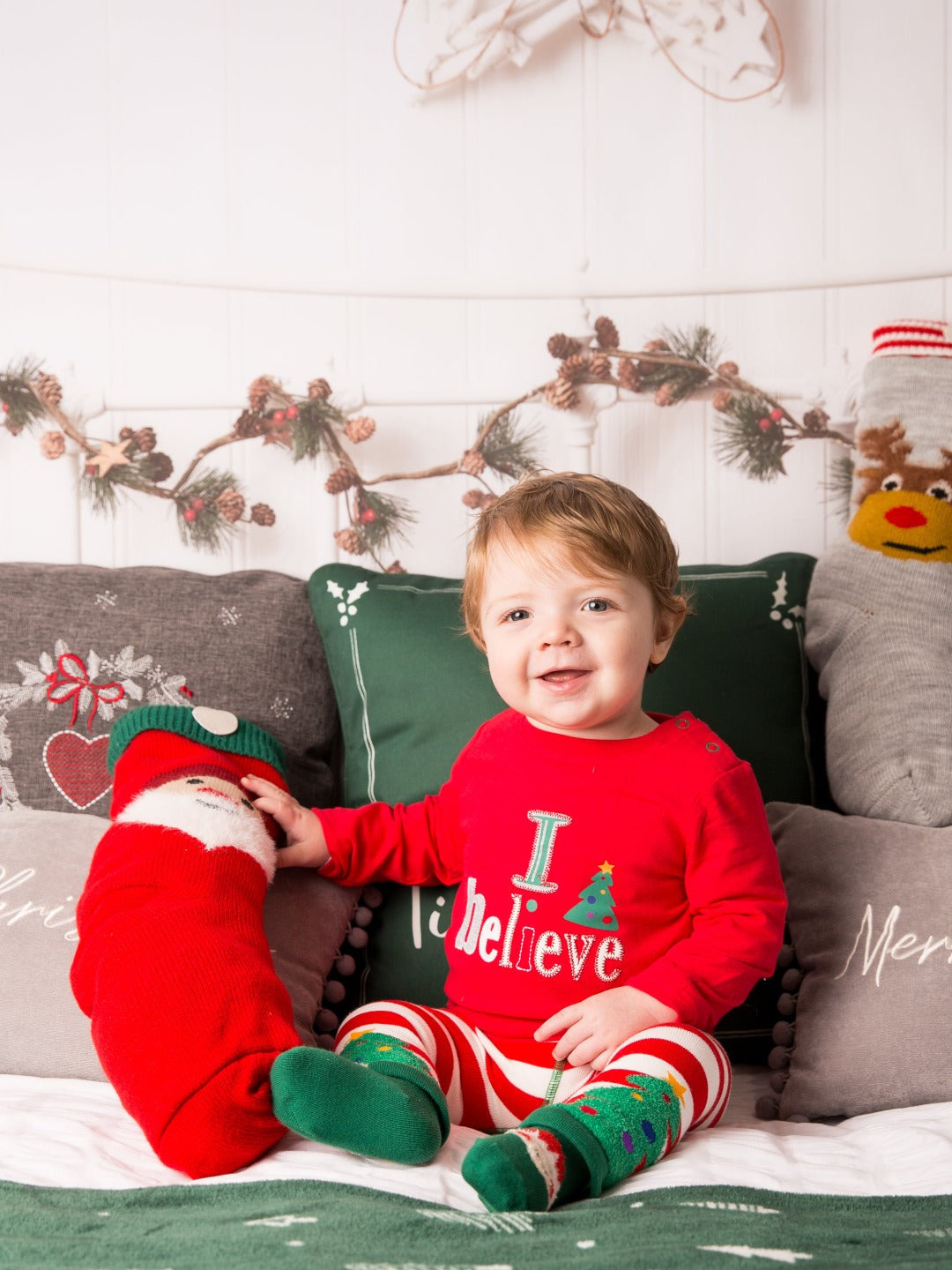穿上这件正面印有 I Believe 字样的长袖棉质红色上衣,您的小宝贝会显得喜庆。