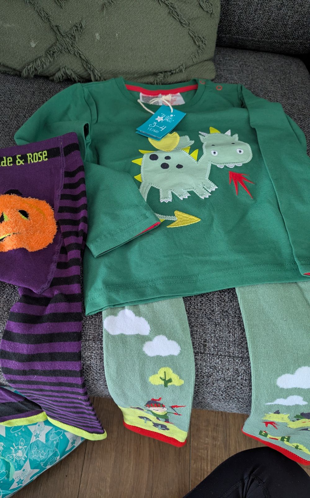 This lovely grass green top features a friendly fire-breathing dragon appliqué on the front.