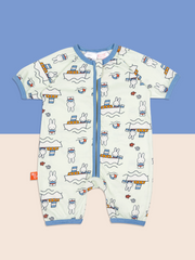 Our Popular Miffy™ Summer romper is destined to delight both adults and kids alike.  The gorgeous Pale Aqua colour with a boat & beach all over design and pale blue trim is perfect for Summer fun.