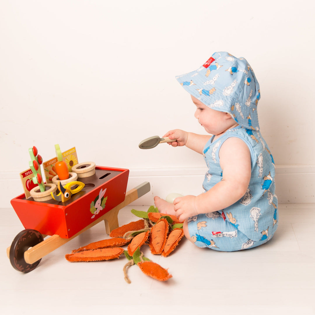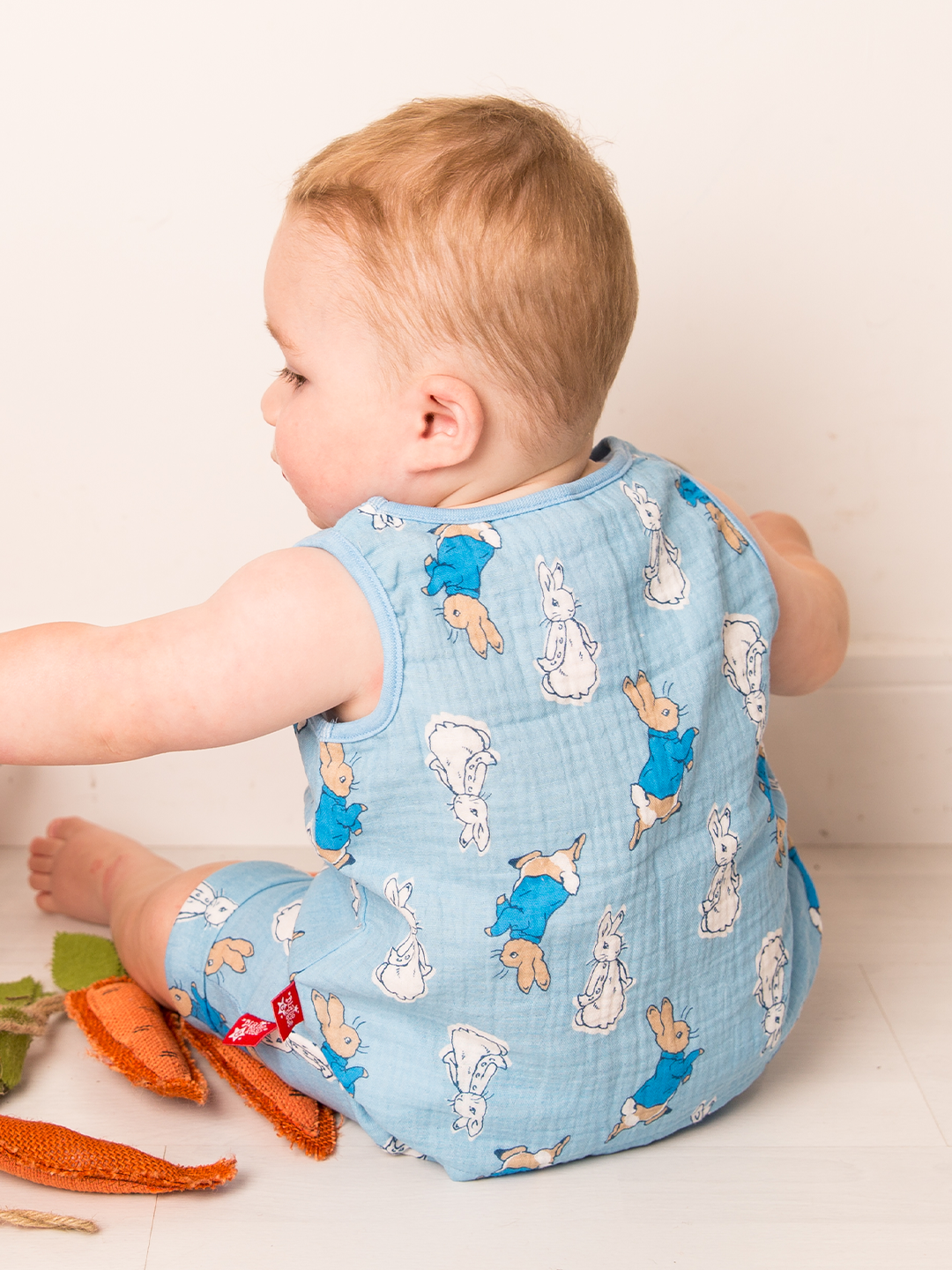 Fabulous quality top and shorts in the loveable Peter Rabbit collection. Made from organic cotton fabric it is the perfect beach outfit for keeping little ones cool whilst having fun at the beach.